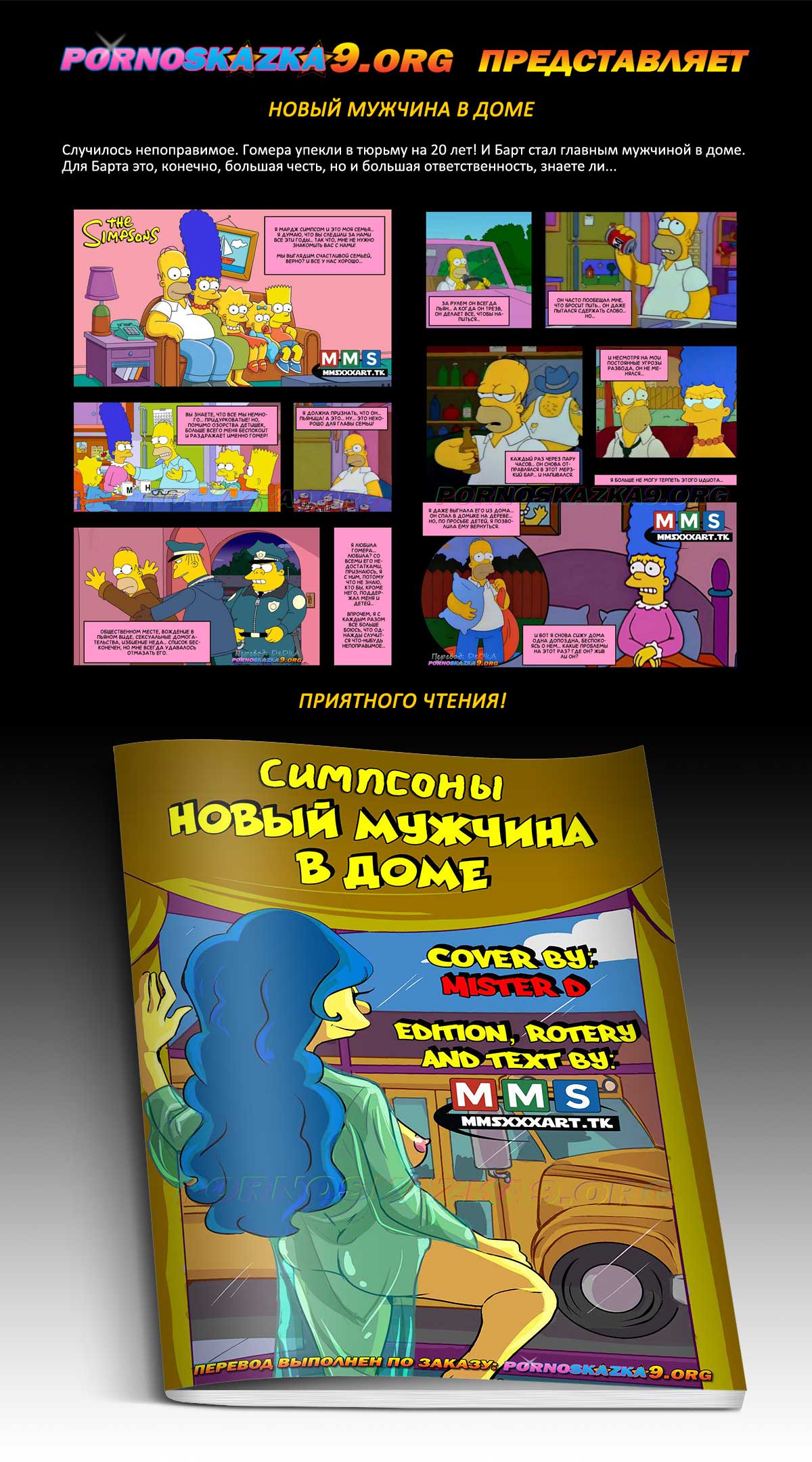 Порно комикс «Новый мужчина в доме. Симпсоны.» Случилось непоправимое. Гомера упекли в тюрьму на 20 лет! И Барт стал главным мужчиной в доме. Для Барта это, конечно, большая честь, но и большая ответственность, знаете ли…